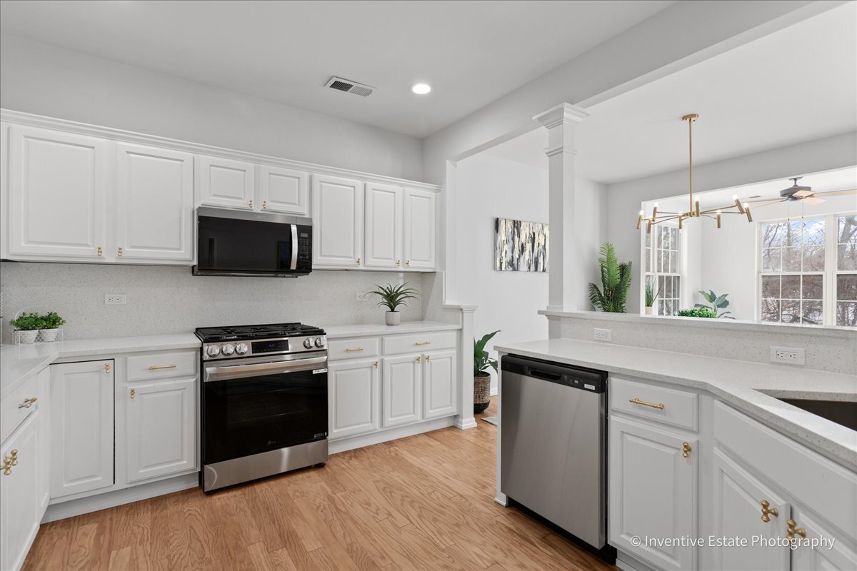 Welcome to this beautifully remodeled, move-in ready home in DEL WEBB SUN CITY active 55+ community in Huntley! This 2-bedroom, 2 full bathroom ranch residence w/ NO STAIRS offers a perfect blend of modern upgrades and comfortable living. Step inside to discover a bright, open layout designed for both everyday living and entertaining. The fully updated kitchen features sleek quartz countertops, stainless steel appliances, a large breakfast bar, and all-new hardware and lighting-creating a stylish and functional space that flows seamlessly into the main living areas. Both bathrooms have been thoughtfully renovated with spa-like finishes, offering a relaxing retreat at the end of the day. Convenient main floor laundry adds to the home's ease and practicality. Plus an attached garage with plenty of storage! Enjoy year-round comfort in the heated sunroom-perfect for morning coffee, reading, or hosting guests. The home's open design makes entertaining effortless and inviting. Beyond the home, the community offers an exceptional lifestyle with an engaging clubhouse, a variety of social activities, a pool, exercise room, on-site restaurant, scenic walking paths, and picturesque lakes. This is low-maintenance living at its finest-schedule your showing today!