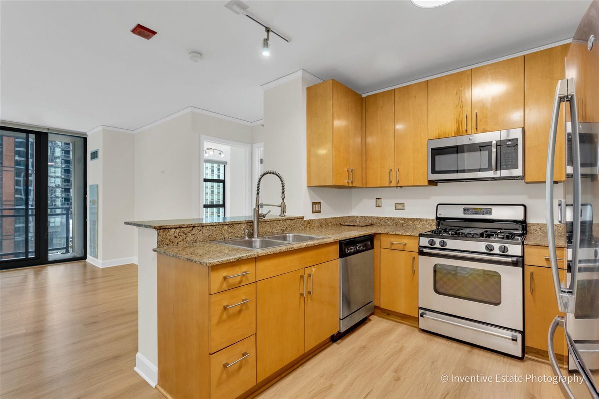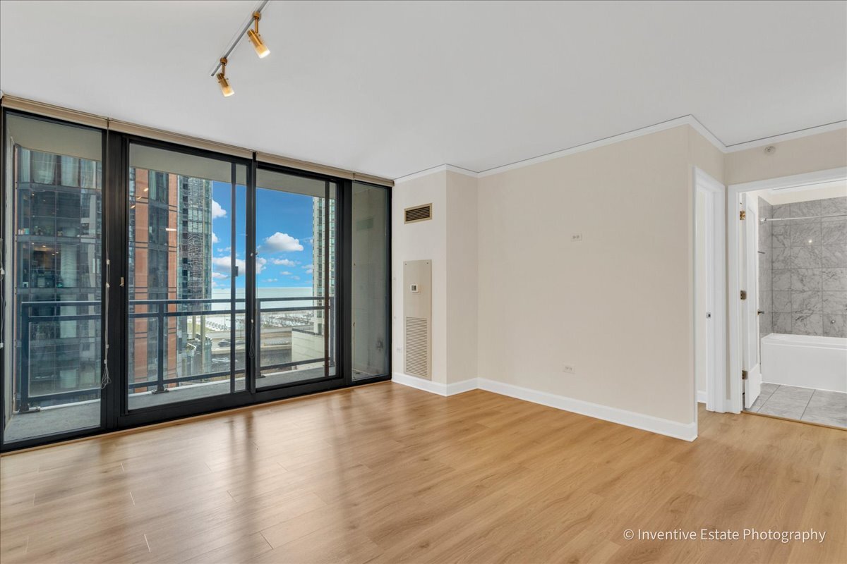 Experience elevated city living in The Lancaster, where breathtaking Lake Michigan views greet you from both your private balcony and bedroom. This sun-drenched, east-facing condo is filled with natural light and has been freshly painted with brand-new flooring throughout, offering a crisp, modern feel from the moment you enter. The kitchen boasts plenty of cabinets w/ granite countertops and a large breakfast bar along with stainless steel appliances. Enjoy true luxury living with a full suite of amenities, including a 24-hour doorman, a stunning 6-acre private park, and direct access to Chicago's vibrant new East Lakeshore community. Residents also have access to a spectacular 30th-floor sundeck complete with grills and lounge furniture-perfect for entertaining or relaxing above the city skyline. Additional features include a fully equipped fitness center, stylish party room, and a pet-friendly environment designed for comfort and convenience. This is a rare opportunity to own a beautifully updated home in one of Chicago's most desirable lakefront buildings.