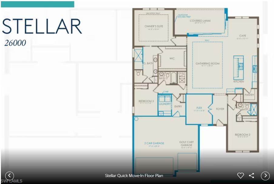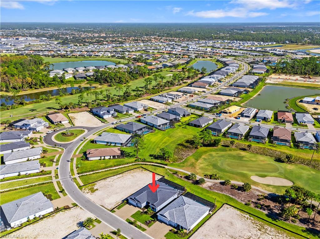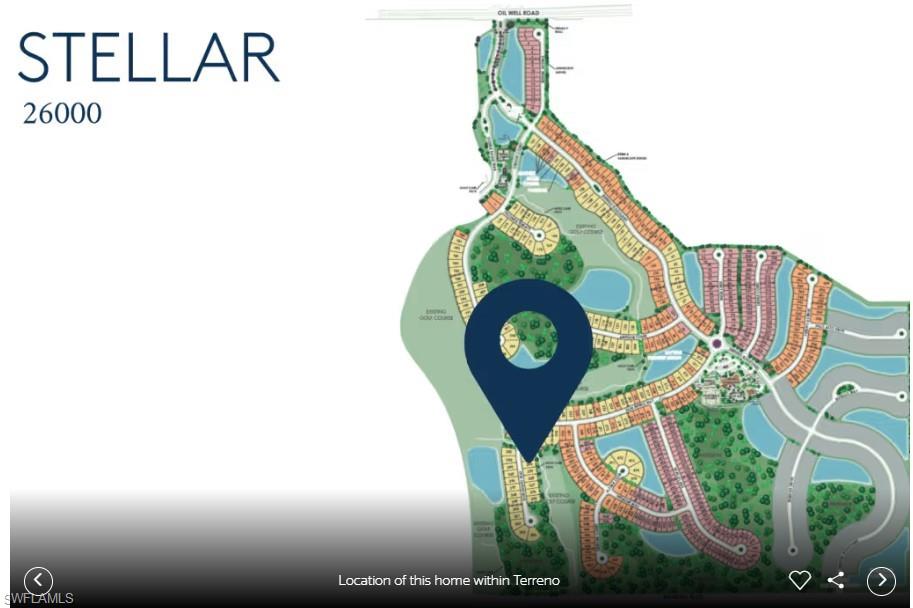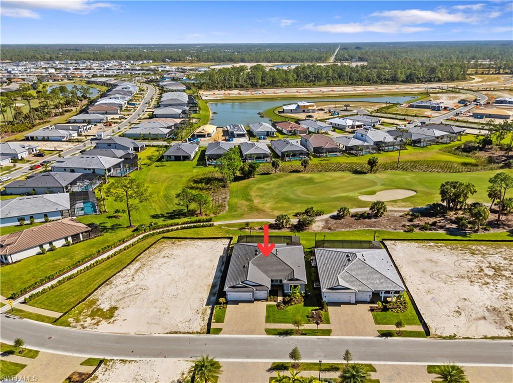 Step inside the stunning Stellar home in Terreno by DiVosta, Naples. This new construction home offers 3 bedrooms, an enclosed flex room, 3 baths, custom pool & spa, and a 3-car garage with epoxy floors. Enjoy breathtaking golf course views from this open-concept design featuring a gourmet kitchen with white, Silestone island and countertops, beautiful backsplash, built-in appliances, and upgraded sink and faucet. The versatile flex room with French doors is perfect for a home office or guest suite. Additional highlights include elegant tile flooring, super-shower in the owner's suite, an upgraded laundry room, zero-corner slider leading to your screened-in covered lanai, and outdoor kitchen pre-plumbing. Relax in the screened-in custom pool and spa or retreat to the luxurious primary suite with a massive walk-in shower, oversized closet, dual sinks, and Silestone counters. Terreno is a gated community with resort-style amenities include a 15,000 sq. ft. clubhouse with a fitness center, movement studio, HOA and lifestyle director onsite, catering kitchen, activity and card rooms, 8 lighted pickleball courts, 4 tennis courts, food truck drive-up area, party pavillion, 2 dog parks, heated resort-style pool with lap lanes, spa, restaurant bar and grill, and nearby 18-hole public golf course. This exceptional Stellar home located on a quiet street is a must-see--schedule your tour today!