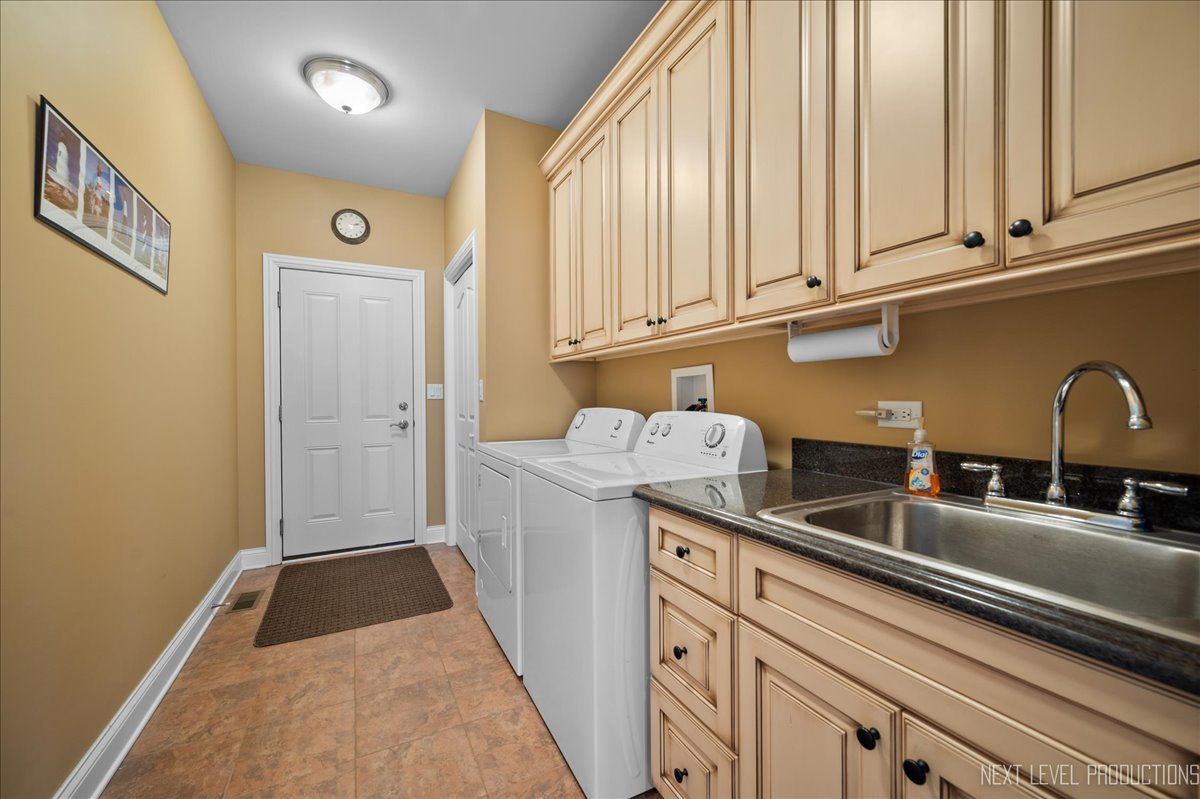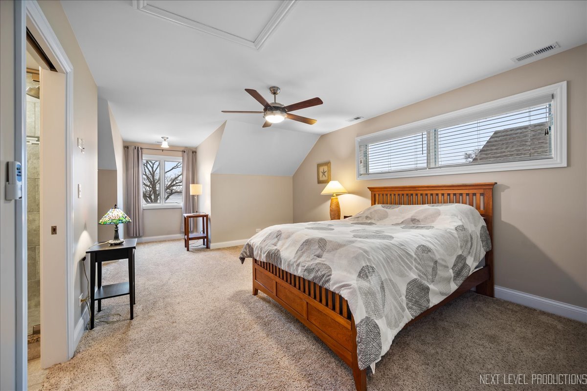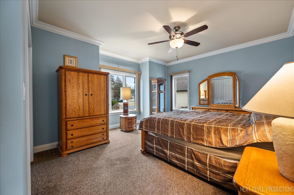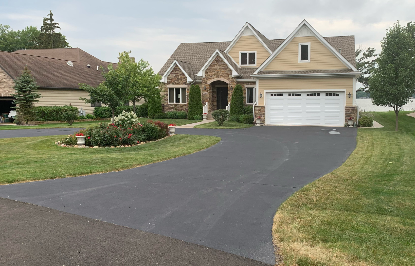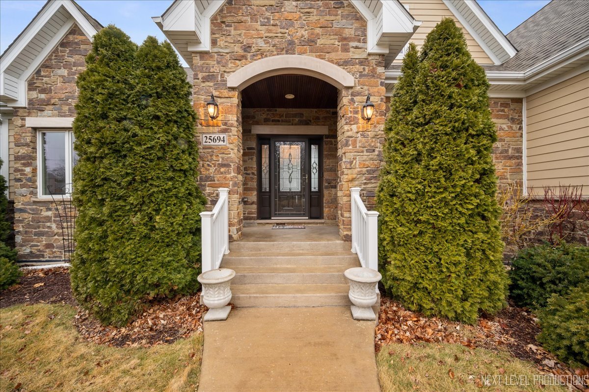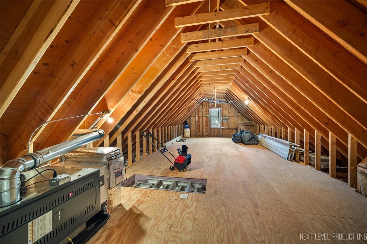This breathtaking Fox Lake waterfront retreat offers an unparalleled blend of luxury, craftsmanship, and natural beauty, making it the perfect sanctuary for those seeking a life of comfort and serenity. Enhanced with high-end finishes, this home invites you in with a stunning vaulted great room filled with natural light, showcasing expansive arched windows that frame mesmerizing sunset views over the water. Every detail has been meticulously designed, from the beautiful beamed ceiling and the warm glow of hardwood floors to the custom Amish-built maple cabinetry with a glazed finish, providing a timeless and elegant touch. The gourmet kitchen is a chef's dream, featuring high-grade granite countertops with Ogee edging, a spacious island, and a frosted glass pantry door, all seamlessly blending style and function. A Regency 42-inch stone and metal box fireplace with an electric blower adds warmth and charm to the living space, creating the ideal setting for cozy evenings. The luxurious primary suite boasts a spa-like experience with a jetted corner Jacuzzi tub, a separate shower, and double sinks, ensuring a private oasis for relaxation. A second bedroom and full bath are on the first level. Additionally there is a convenient first floor office/den. On the second level there are two additional spacious bedrooms, a large loft, full bath and an expandable attic that offers endless possibilities for customization and growth. Designed for both beauty and durability, the exterior features James Hardie Lifetime warranty siding, custom stonework, and rock-face limestone sills. A Trex deck and patio extend your living space outdoors, where you can enjoy your private 104 feet of Fox Lake shoreline, complete with a maintenance-free L-shaped pier and built-in bench (included) for ultimate lakefront enjoyment. Thoughtful upgrades such as underground electric service to the shore station, aluminum-clad Pella windows with low-E glass, and a LiftMaster oversized garage door opener enhance both convenience and efficiency. This is an oversized 3 car garage. With a circular drive, fully custom landscaping, and a tranquil setting, this home is more than just a residence-it's a lifestyle. This type of property is rarely available.