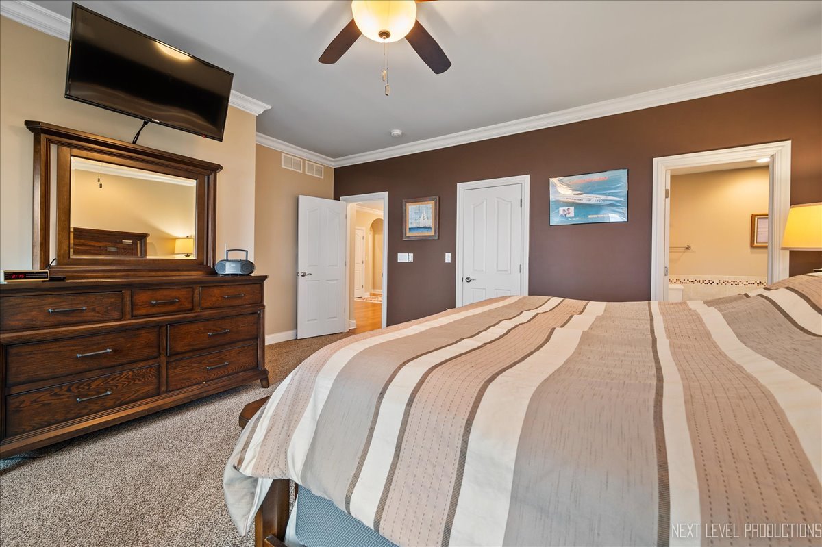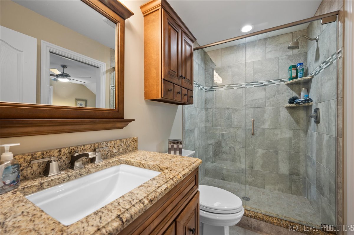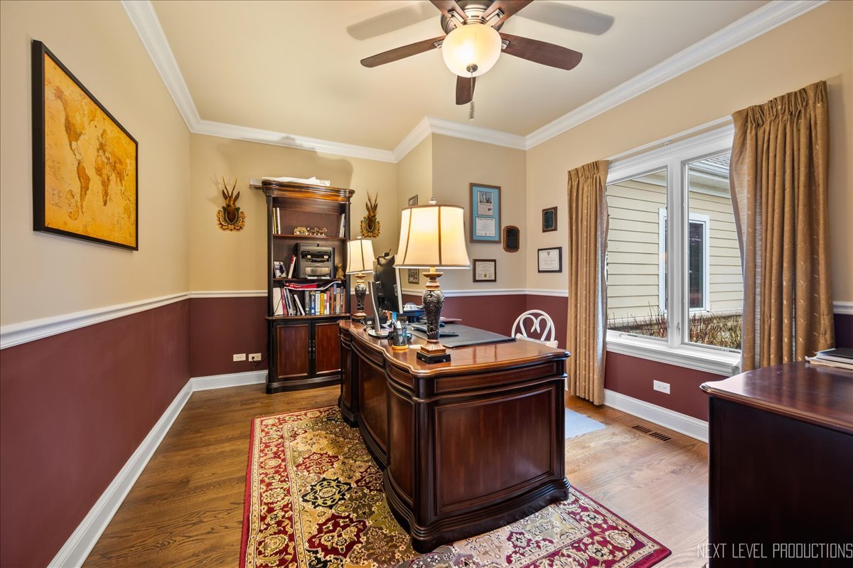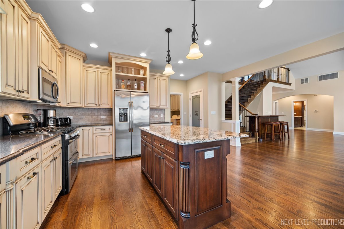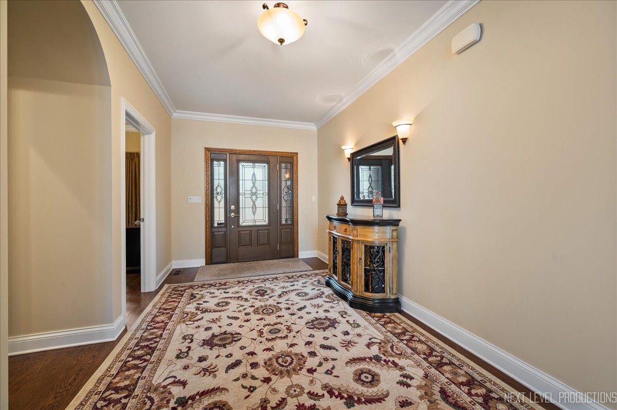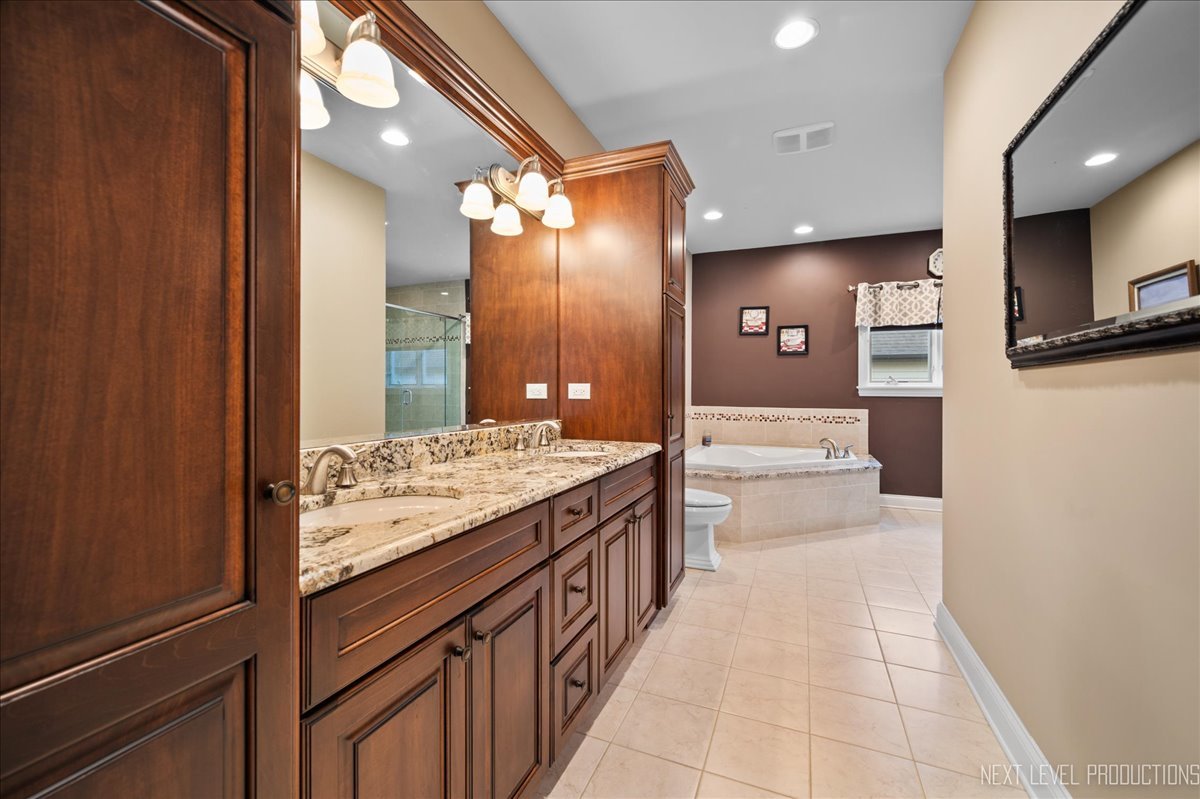 This breathtaking Fox Lake waterfront retreat offers an unparalleled blend of luxury, craftsmanship, and natural beauty, making it the perfect sanctuary for those seeking a life of comfort and serenity. Enhanced with high-end finishes, this home invites you in with a stunning vaulted great room filled with natural light, showcasing expansive arched windows that frame mesmerizing sunset views over the water. Every detail has been meticulously designed, from the beautiful beamed ceiling and the warm glow of hardwood floors to the custom Amish-built maple cabinetry with a glazed finish, providing a timeless and elegant touch. The gourmet kitchen is a chef's dream, featuring high-grade granite countertops with Ogee edging, a spacious island, and a frosted glass pantry door, all seamlessly blending style and function. A Regency 42-inch stone and metal box fireplace with an electric blower adds warmth and charm to the living space, creating the ideal setting for cozy evenings. The luxurious primary suite boasts a spa-like experience with a jetted corner Jacuzzi tub, a separate shower, and double sinks, ensuring a private oasis for relaxation. A second bedroom and full bath are on the first level. Additionally there is a convenient first floor office/den. On the second level there are two additional spacious bedrooms, a large loft, full bath and an expandable attic that offers endless possibilities for customization and growth. Designed for both beauty and durability, the exterior features James Hardie Lifetime warranty siding, custom stonework, and rock-face limestone sills. A Trex deck and patio extend your living space outdoors, where you can enjoy your private 104 feet of Fox Lake shoreline, complete with a maintenance-free L-shaped pier and built-in bench (included) for ultimate lakefront enjoyment. Thoughtful upgrades such as underground electric service to the shore station, aluminum-clad Pella windows with low-E glass, and a LiftMaster oversized garage door opener enhance both convenience and efficiency. This is an oversized 3 car garage. With a circular drive, fully custom landscaping, and a tranquil setting, this home is more than just a residence-it's a lifestyle. This type of property is rarely available.