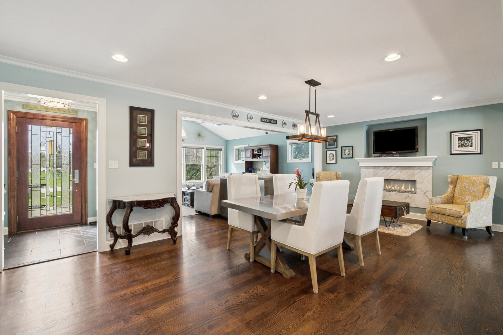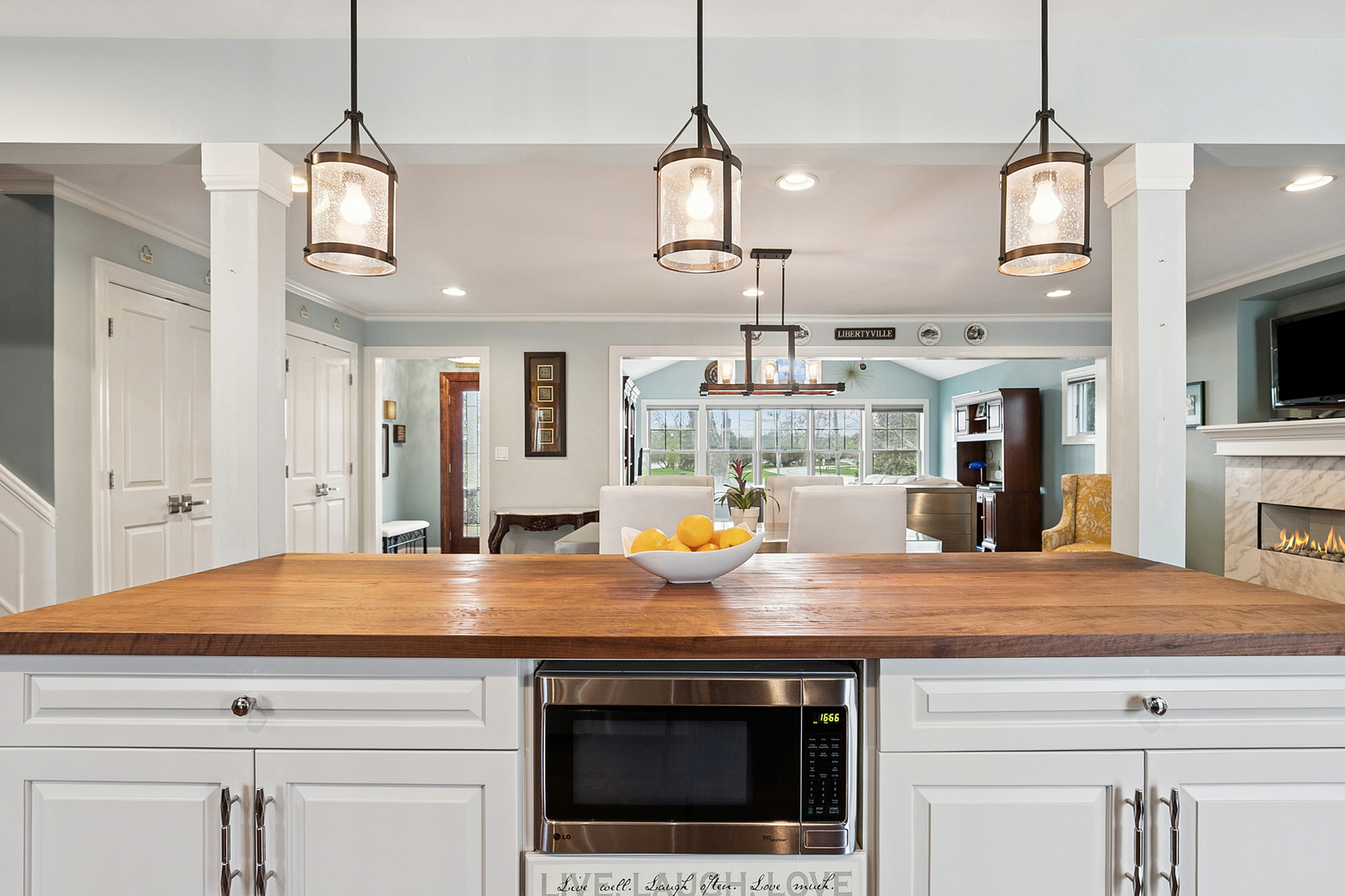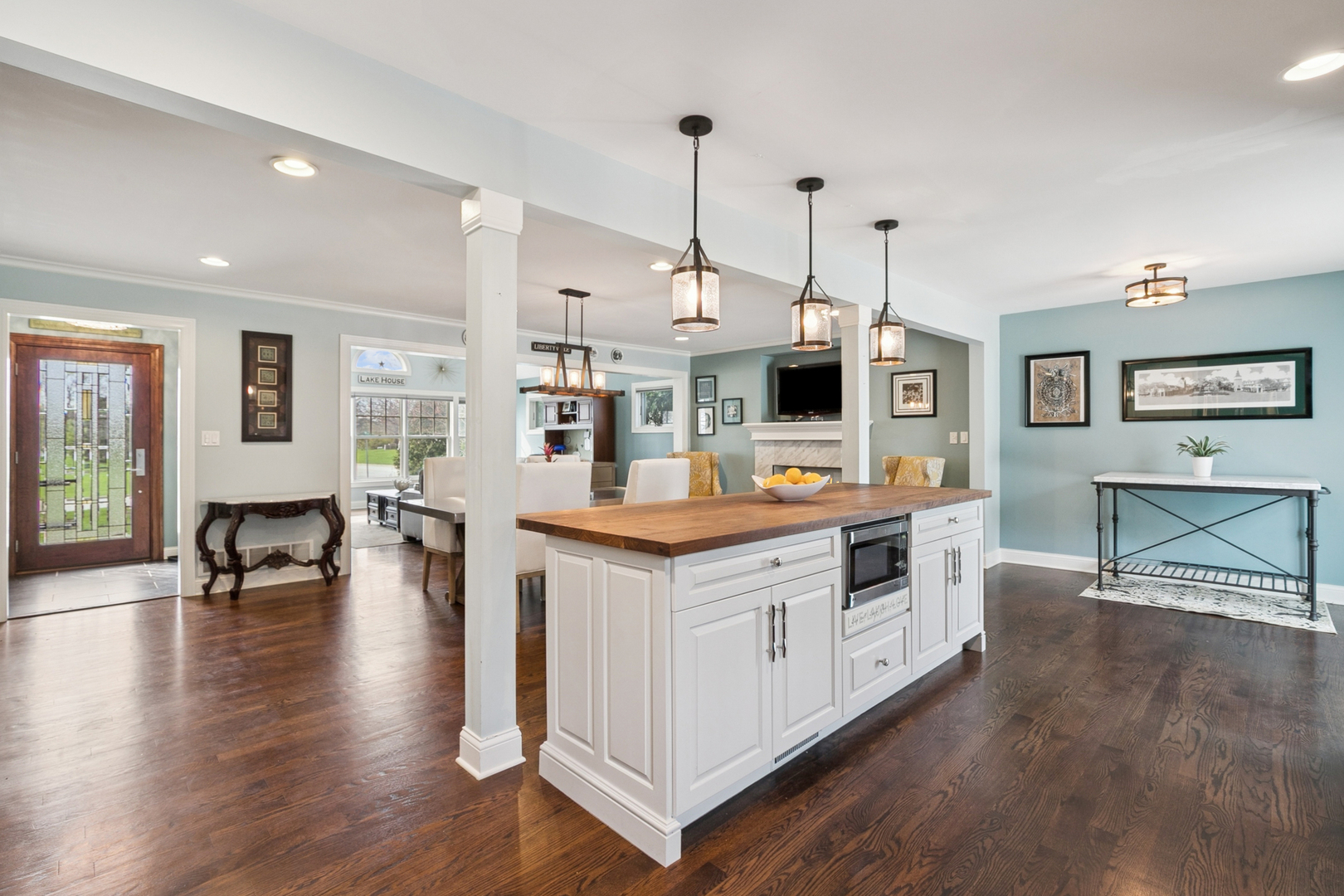 Timeless in style and exceptional in setting, this home invites you to settle in and stay awhile. A unique paver brick front patio welcomes slow mornings and sunset gatherings, offering a front-row seat to the natural beauty of Butler Lake just beyond your doorstep. Inside, rich hardwood flooring and plantation shutters create a warm atmosphere that feels both classic and comfortable. The kitchen balances style and function with an open connection to the main living spaces, anchored by a generous center island providing a natural gathering spot for casual meals, conversation and entertaining. A truly special location offering a rare blend of peaceful surroundings and vibrant community connection, just moments from the charm of downtown Libertyville's boutique shopping, dining and community events.